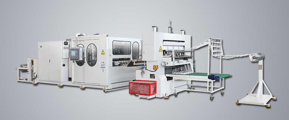 打杯機:一般輻射加熱結合接觸加熱;正壓吹起成型結合真空成型;一般有金屬輔助調溫柱塞(上模);成型時封邊,拉伸吹氣(吸氣)